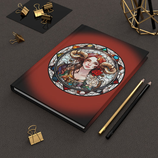 Aries Stained Glass Illustration with Poem Hardcover 150 Page Journal