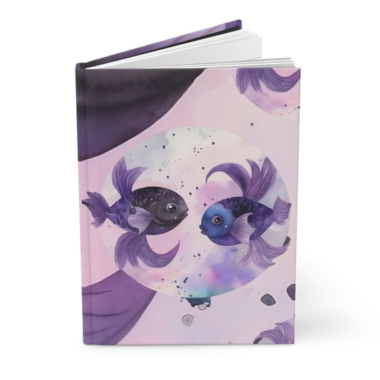 Pisces Purple Caricatures with Poem Hardcover 150 Page Journal