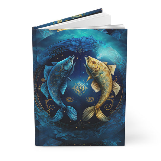 Pisces Fish in Gold and Blue with Poem Hardcover 150 Page Journal