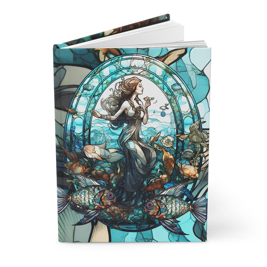 Pisces Stained Glass Illustration with Poem Hardcover 150 Page Journal