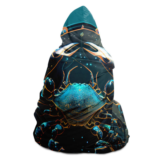 Cancer the Crab in Bronze & Blue Hooded Blanket