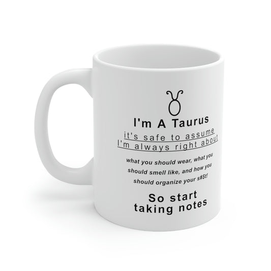 Taurus Mug: I'm A Taurus - Assume I'm Right About... - full text in description