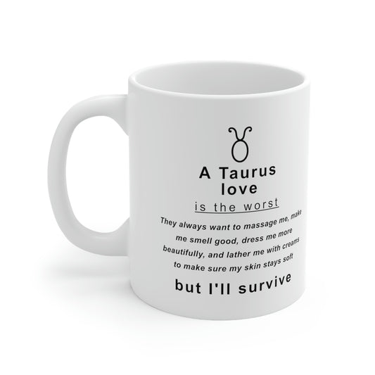 Taurus Mug: "Taurus Love is the Worst!" - full text in description