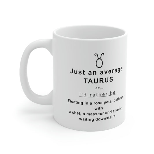 Taurus Mug: I'd rather be floating in a bathtub with rose petals... - full text in description