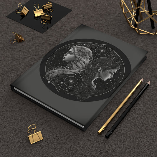 Gemini Twins in Silver and White with Poem Hardcover 150 Page Journal