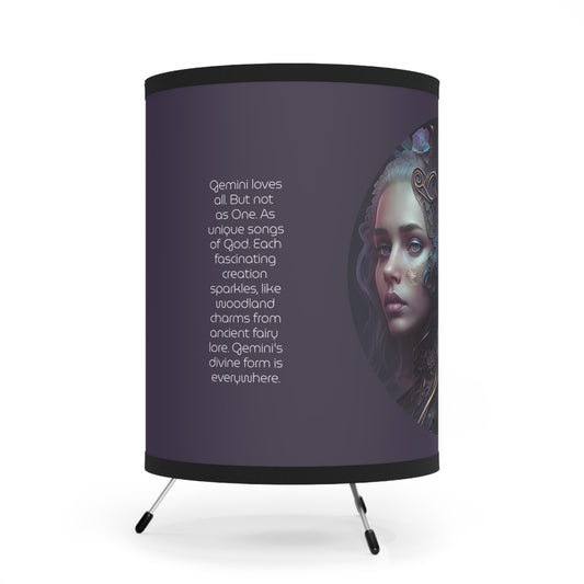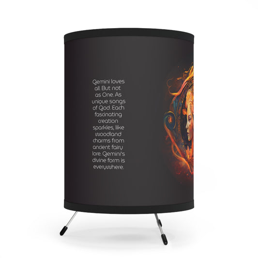 Gemini Fire and Water Twins with Inspirational Poem Printed Shade Tripod Lamp, US\CA plug