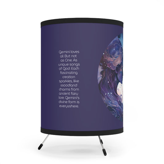 Gemini Twins in Blue and Violet with Inspirational Poem Printed Shade Tripod Lamp, US\CA plug