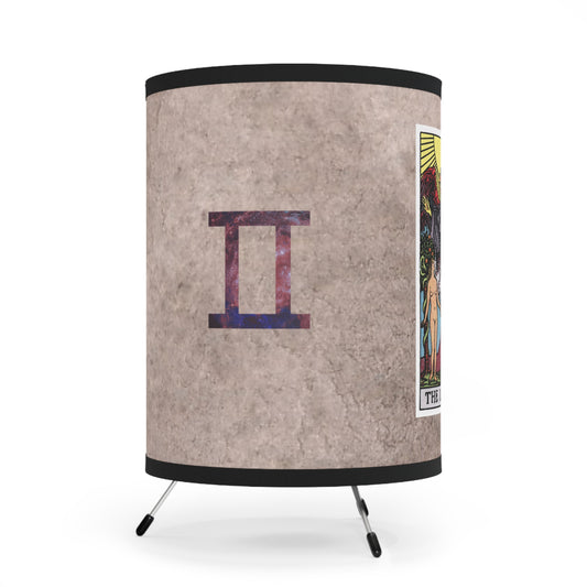 The Lovers Tarot Card with Gemini Symbols Printed Shade Tripod Lamp, US\CA plug