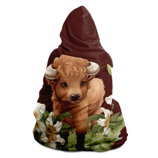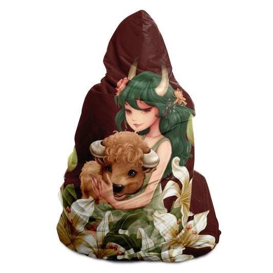 Taurus Girl and Bull Vintage Illustration Hooded Blanket