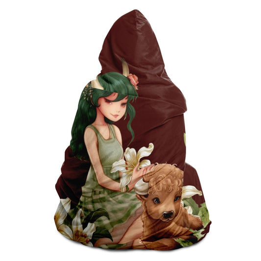 Taurus Girl and Bull in Garden Vintage Illustration Hooded Blanket