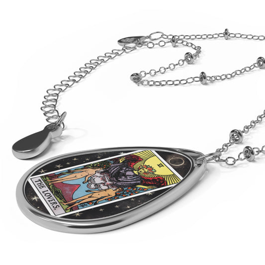 The Lovers Tarot Card Oval Pendant Necklace With Chain