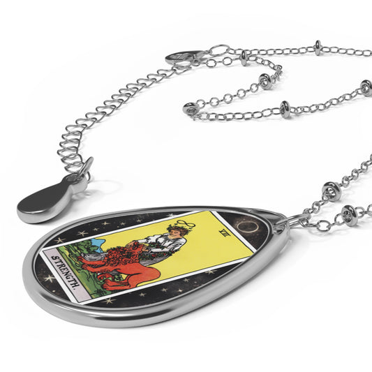 The Strength Tarot Card Oval Pendant Necklace With Chain