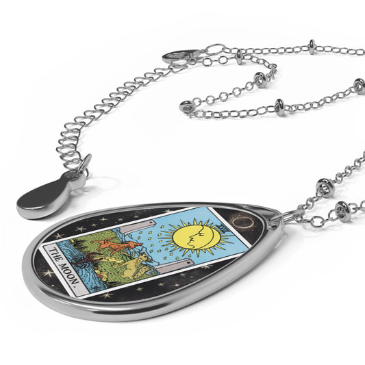 The Moon Tarot Card Oval Pendant Necklace With Chain