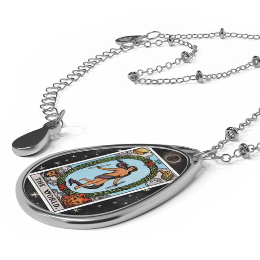 The World Tarot Card Oval Pendant Necklace With Chain and starry background