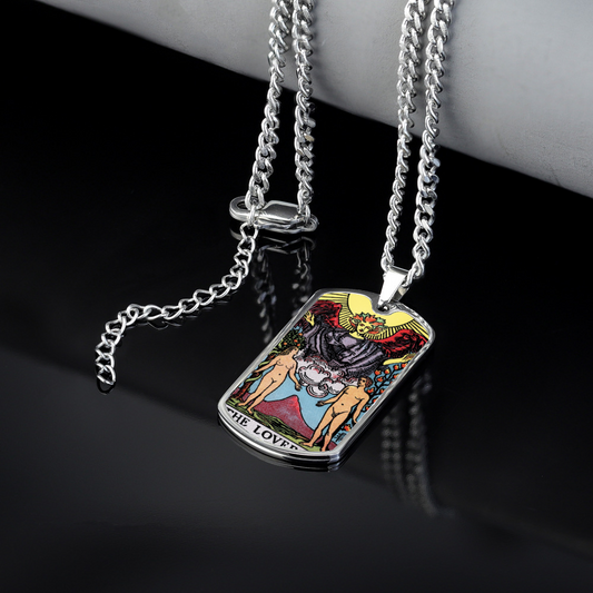 The Lovers Tarot Card Double Sided Print Rectangular Pendant and Necklace