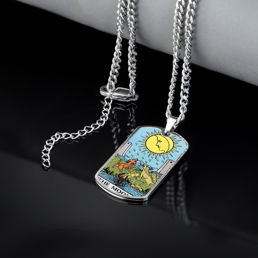 The Moon Tarot Card Double Sided Print Rectangular Pendant and Necklace