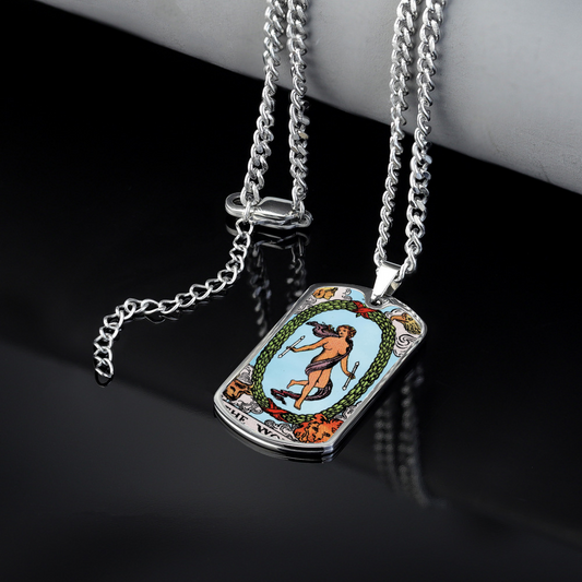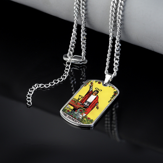 The Magician Tarot Card Double Sided Print Rectangular Pendant and Necklace
