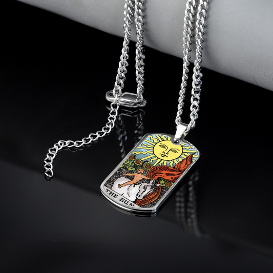 The Sun Tarot Card Double Sided Print Rectangular Pendant and Necklace