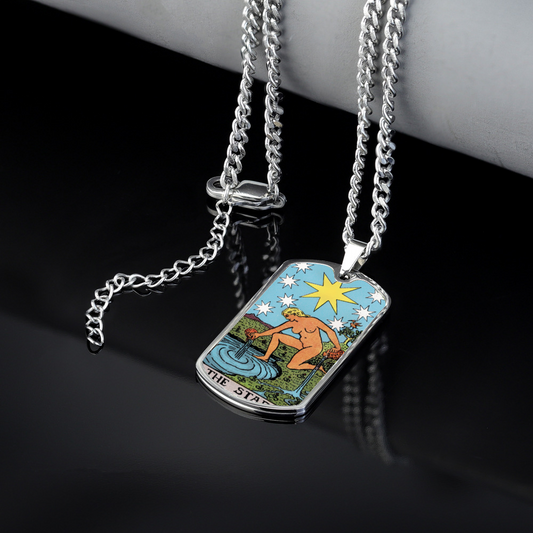 The Star Tarot Card Double Sided Print Rectangular Pendant and Necklace
