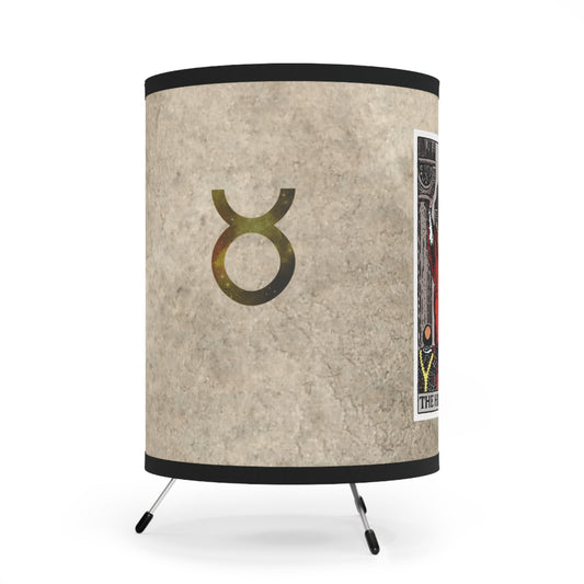 The Hierophant Tarot Card with Taurus Symbols Printed Shade Tripod Lamp, US\CA plug