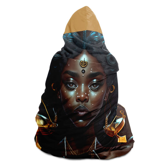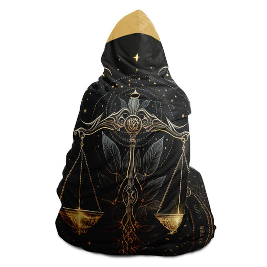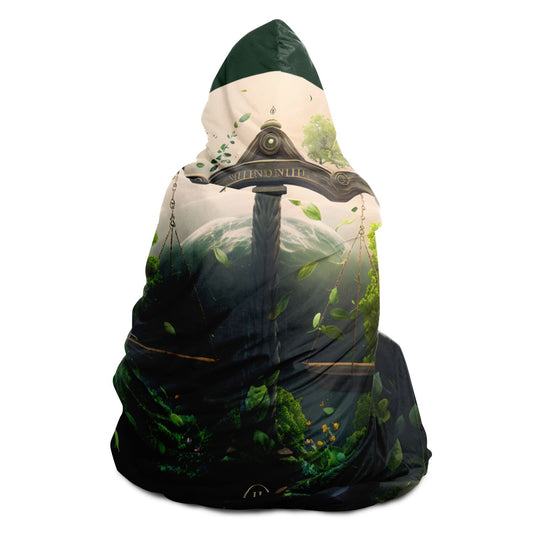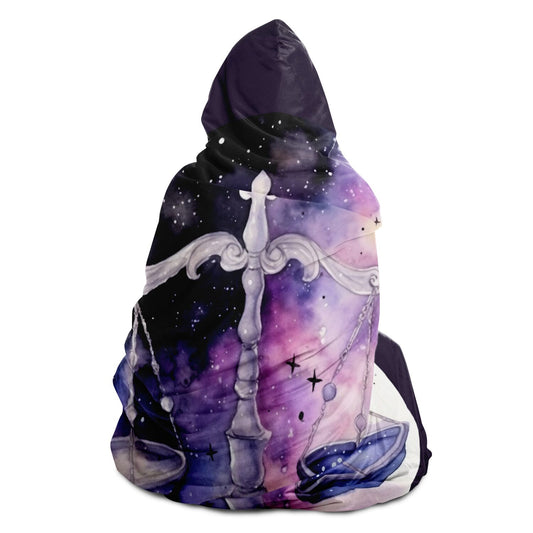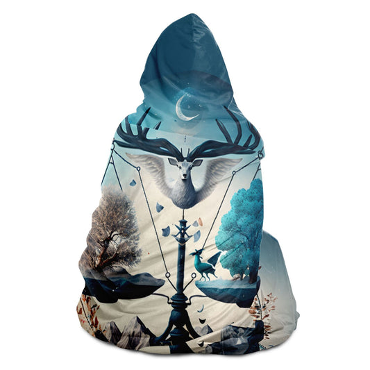 Libra Scales with Majestic Blue and White Trees Hooded Blanket