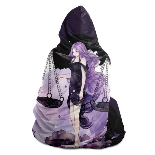 Libra Purple Caricature with Stars Shadowed Hooded Blanket