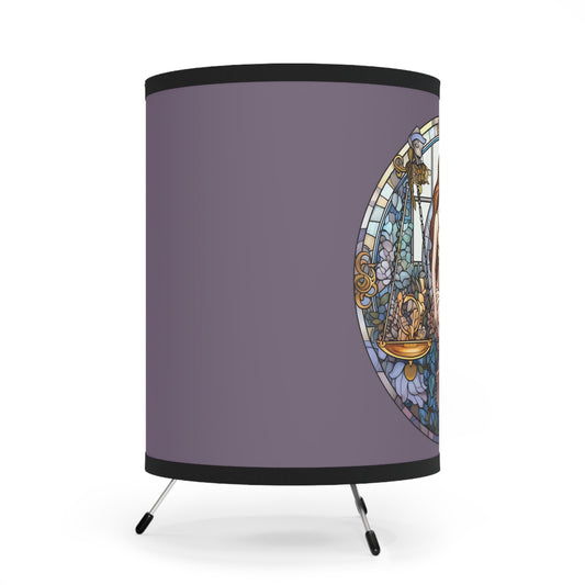 Libra Stained Glass Illustration Tripod Lamp with Printed Shade, US\CA plug