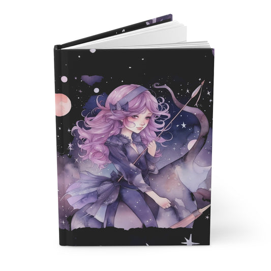 Sagittarius purple Fantasy Illustration with Poem Hardcover 150 Page Journal
