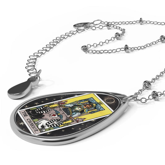 The Chariot Tarot Card Oval Pendant Necklace With Chain