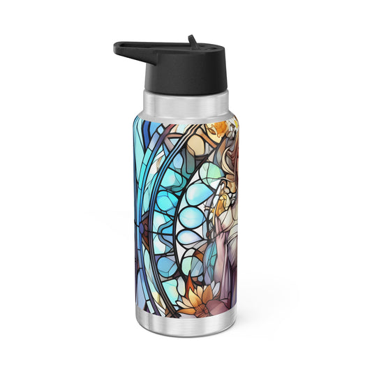 Virgo Zodiac Sign in White Dress Stained Glass Illustration ~ 32oz Tumbler With Lid and Straw