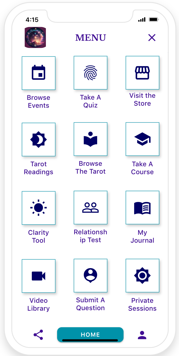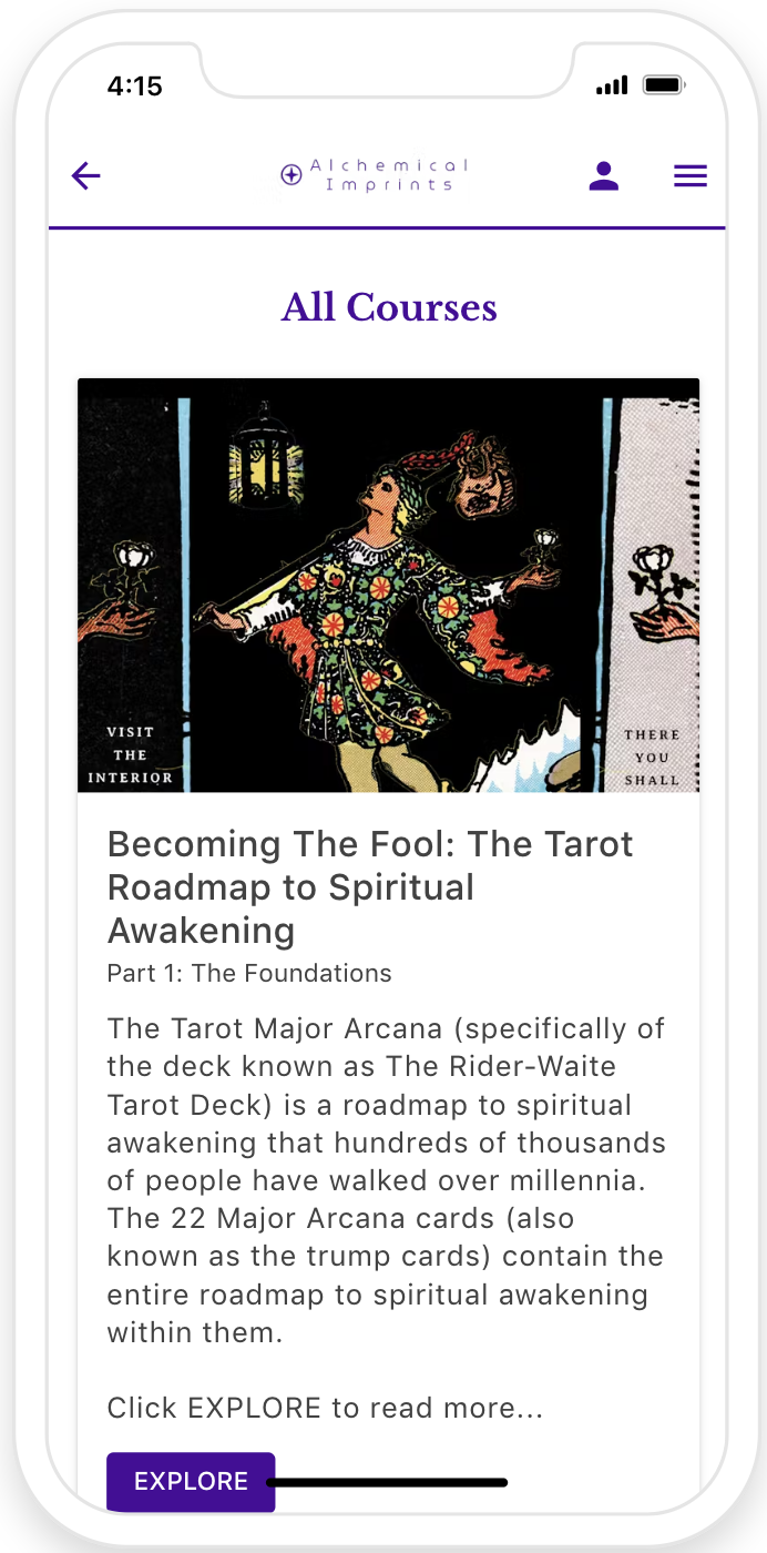 The Alchemical Imprints App is a library of Tarot cards, meditations, self-help courses, automated Tarot readings, quizzes, journaling and contemplation prompts.